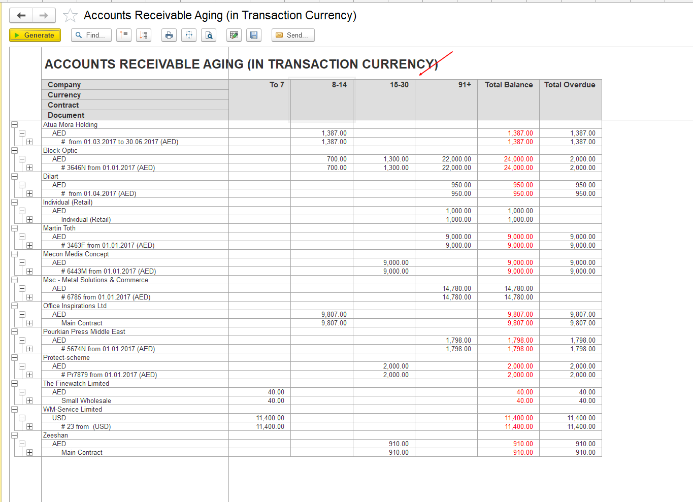 In FirstBIT Software, aging reports are built dynamically based on actual outstanding documents.