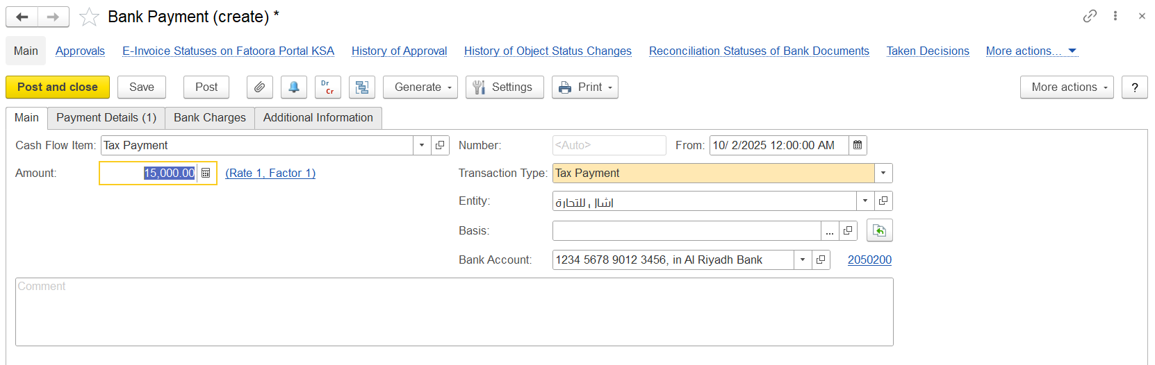 If a tax loss exists, other expenses can be generated based on the CIT Return per registered tax laws. Users can select the applicable CIT rate, and the system calculates deferred taxes using this rate rather than the standard statutory rate. An Other Expenses transaction is then created, recognizing the expenses corresponding to deferred taxes, which can be adjusted in future periods.