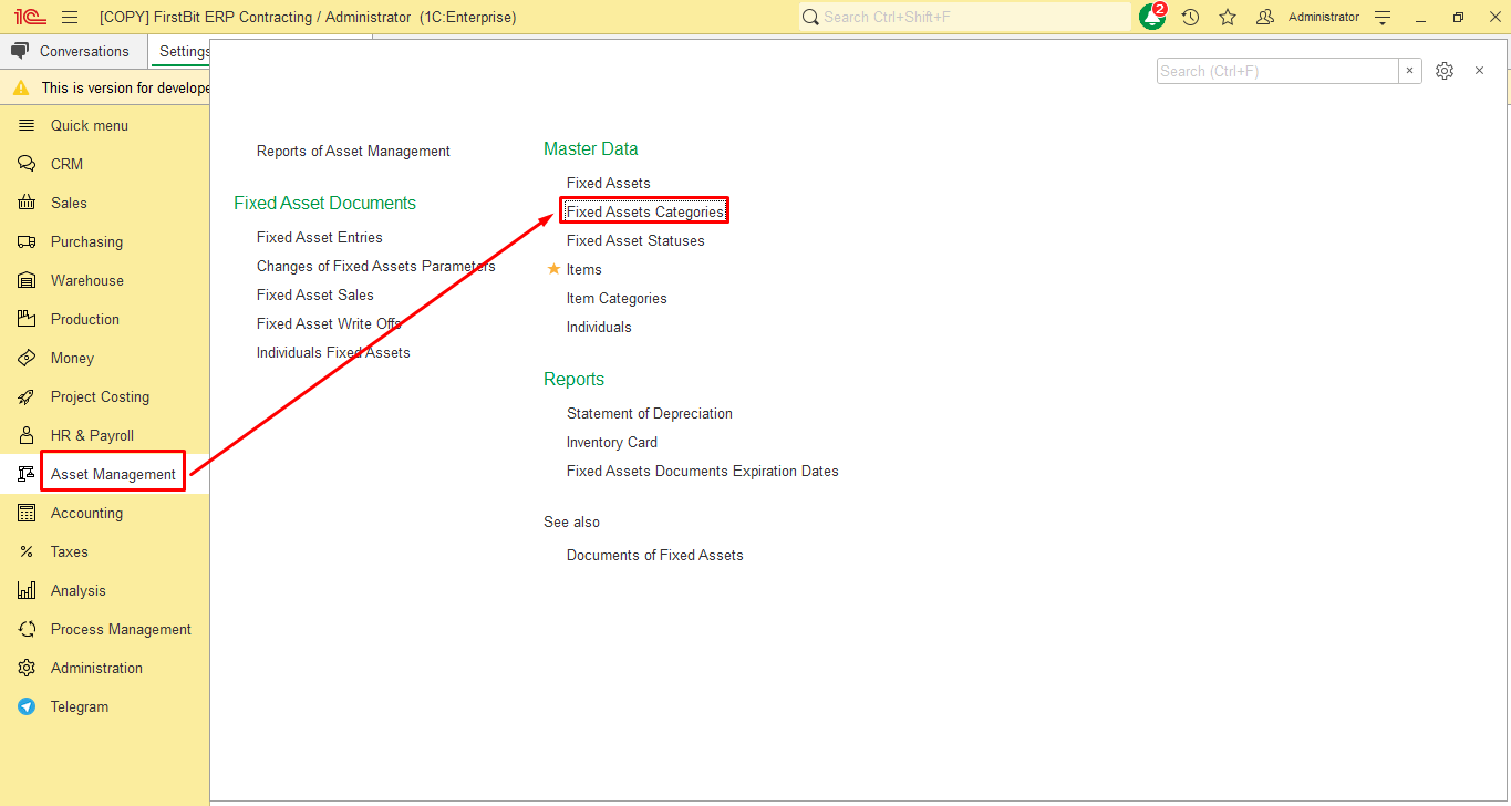 In the FirstBit Software you are able to create and use Fixed Assets categories.