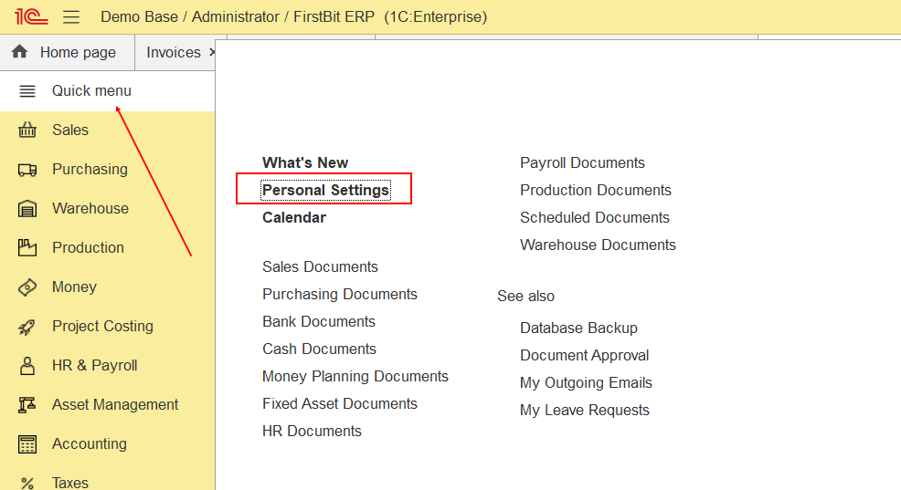2. To set this option, user individually should open Quick Menu - Personal Settings: