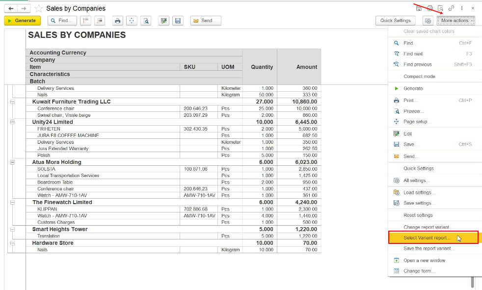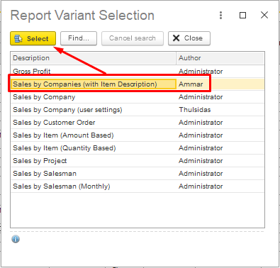 From Report Variant Selection form user can choose variant he needs, choose report variant and click Select.