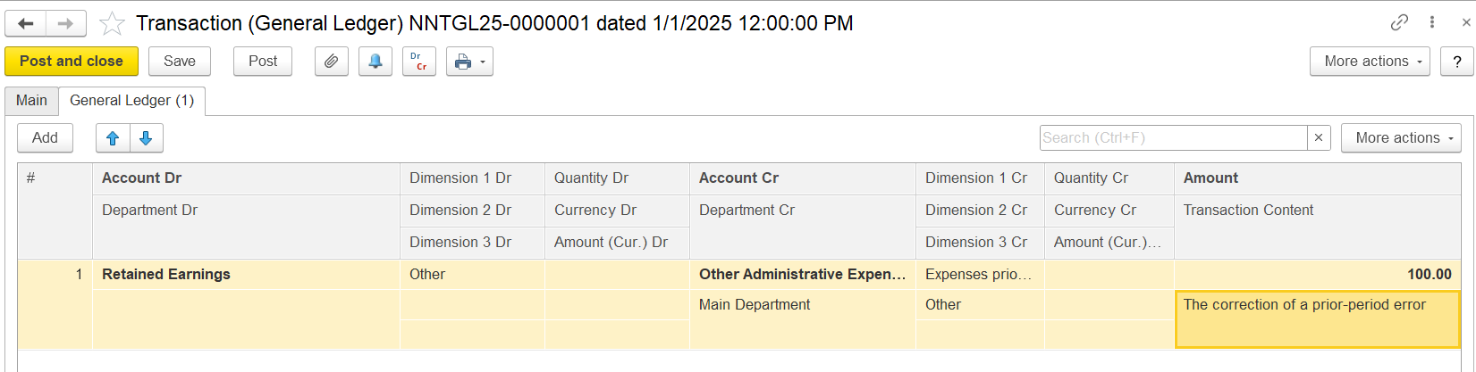 3. In the Transaction Content (description), indicate that this entry represents a correction of a prior-period error.