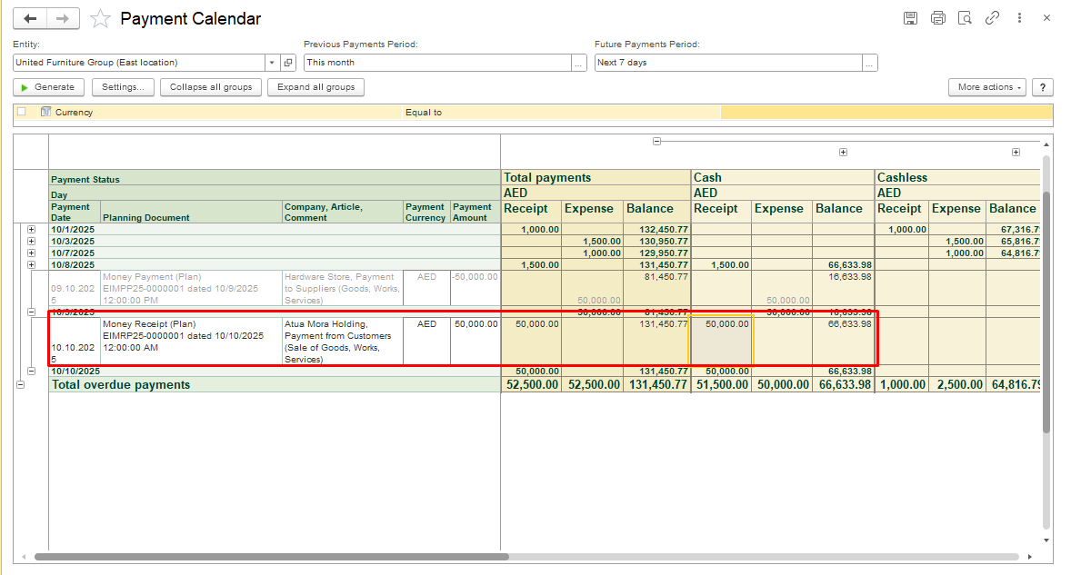 In FirstBit, you can easily create actual payment documents (Cash/Bank/Cheque) directly from the Payment Calendar, based on existing planned documents such as: