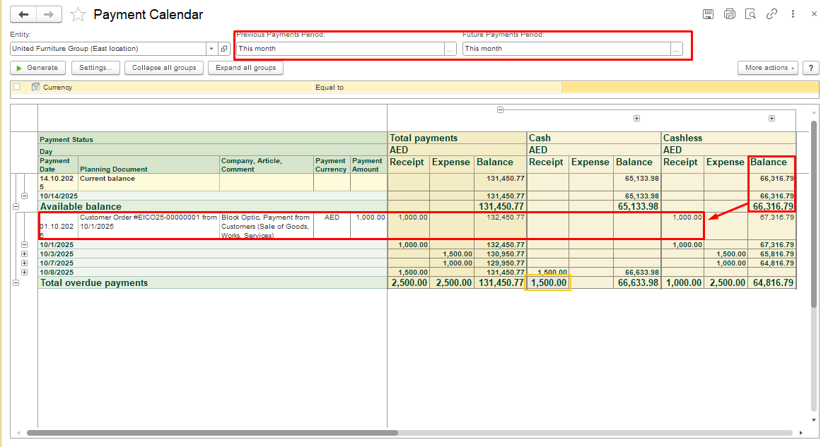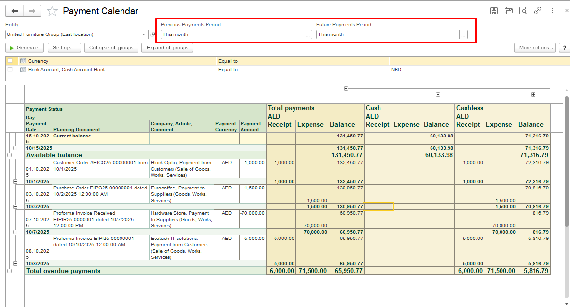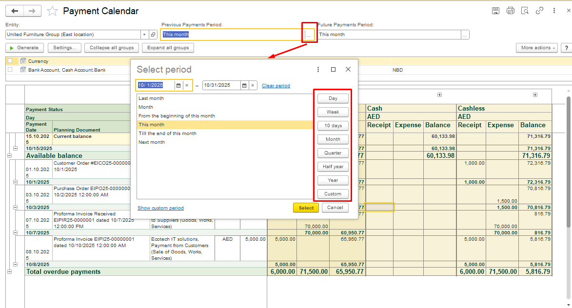 Planning Period Settings. When generating the payment calendar report, you can set: