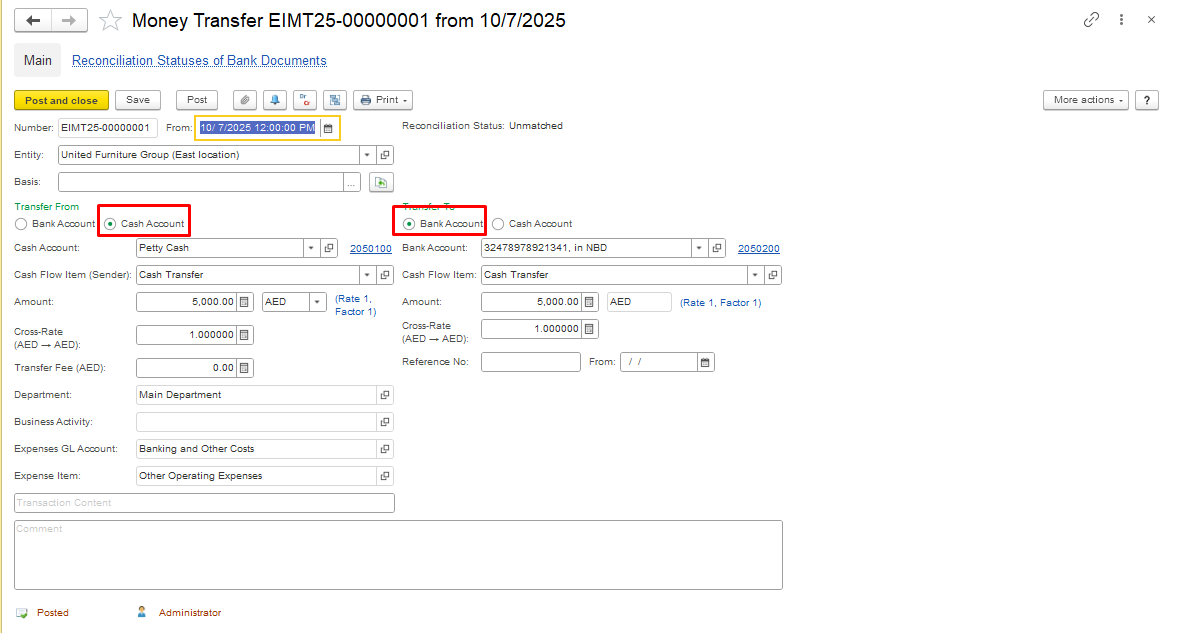 - Move funds between your accounts, if applicable. To do this, you can use the Money Transfer document. This way, you will increase the remaining funds on the balance.