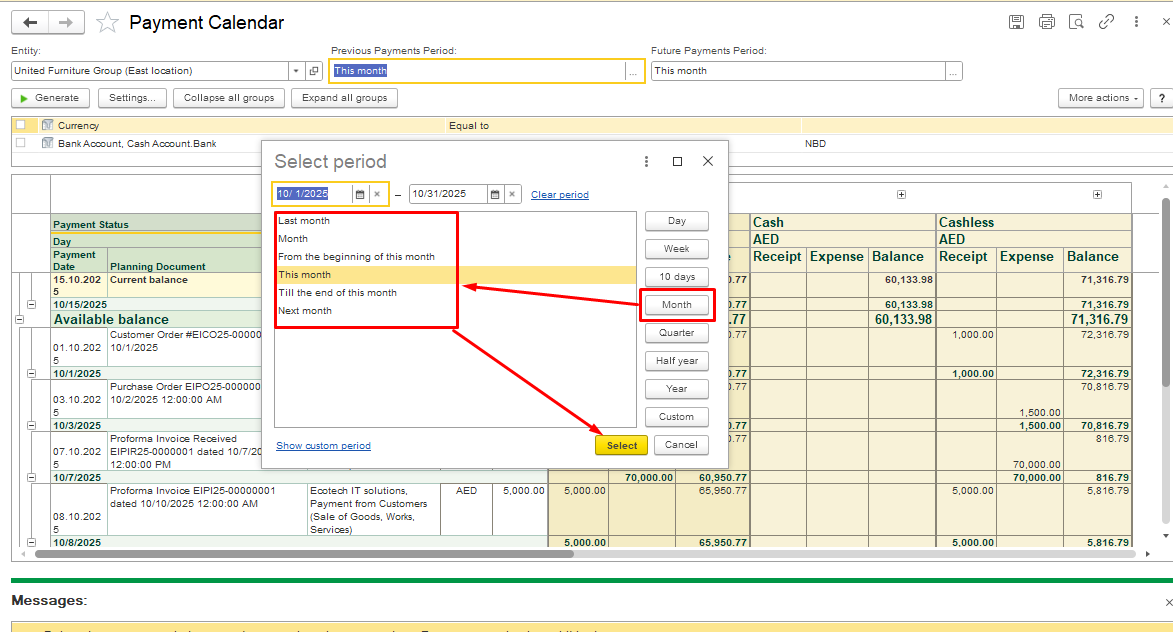 - Go to Payment Calendar, select the desired time period.