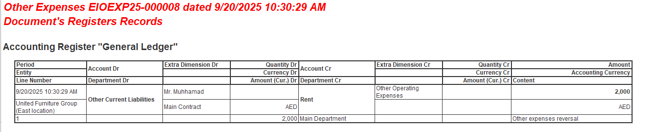 Debit: Other Current Payables (This clears the liability that was recorded when the expense was initially recognized)