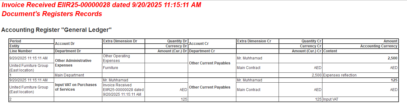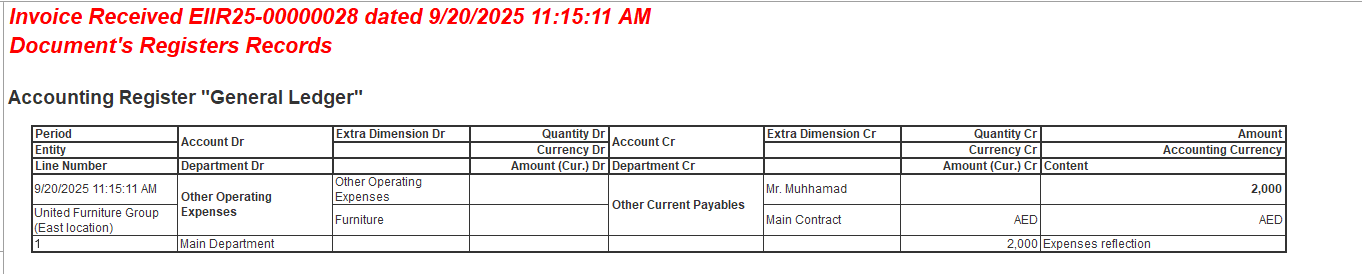 The reversal and the Invoice Received document offset each other, effectively canceling the expense while recording the liability to pay the supplier. Please note that, due to accrual accounting, the initially recorded expense represents the actual expense.