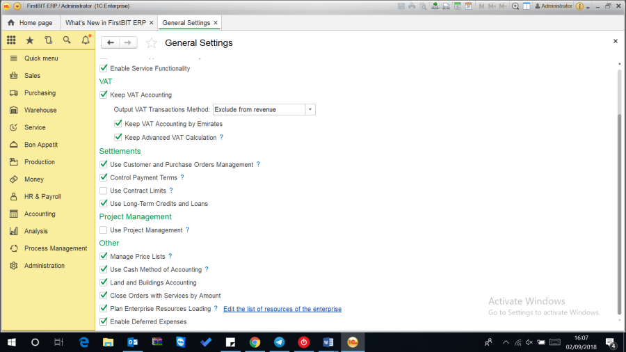 Go to Administration > General settings > Enable Deferred expense