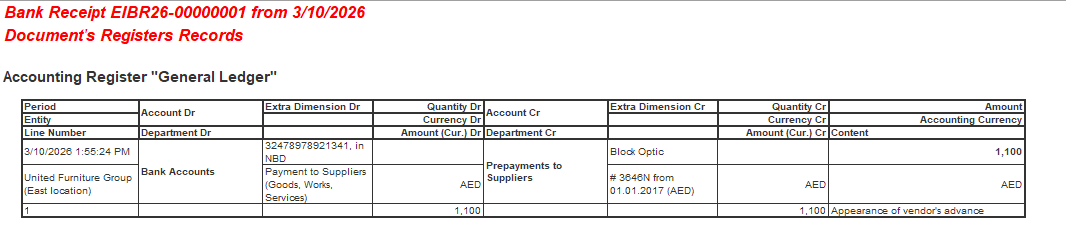 Solution: Create a Bank Receipt document as shown.